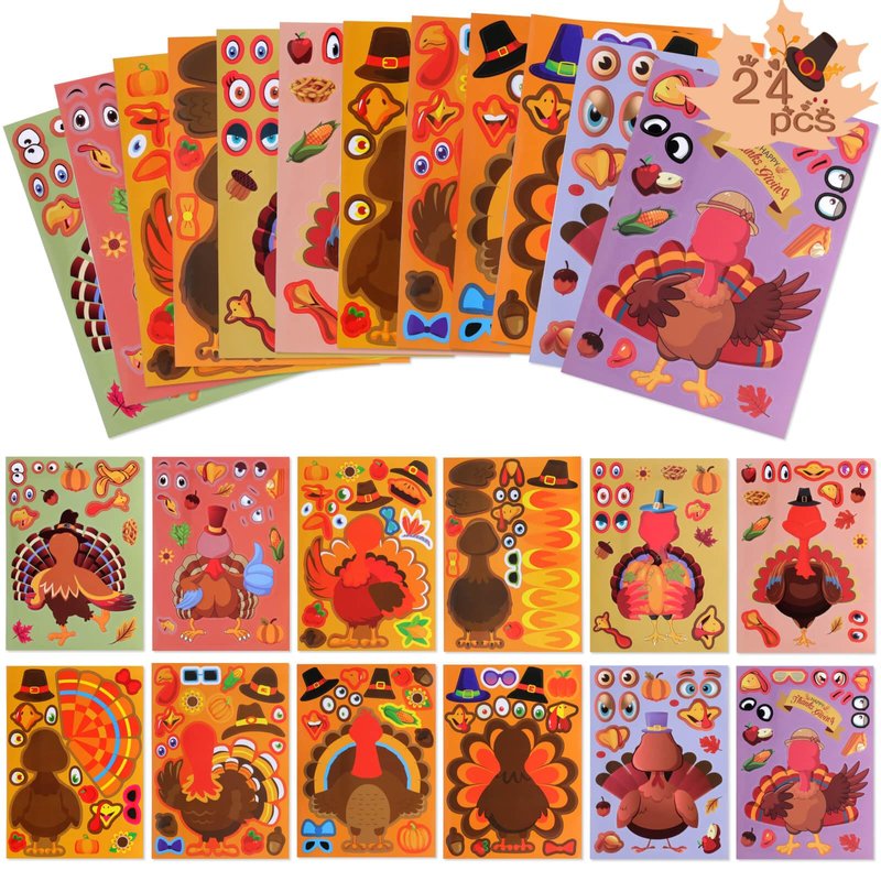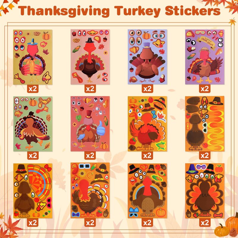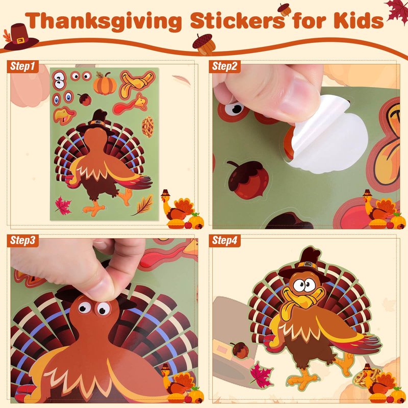 • Make a Face Stickers for Kids: Turkey face stickers are made of paper, not easy to fade, easy to peel and stick, DIY design your own unique stickers, great for decorating fall party. Thanksgiving sticker sheets thanksgiving sticker craft thanksgiving stickers for toddlers thanksgiving stickers bulk thanksgiving crafts for kids ages 3-5 turkey toys for kids thanksgiving craft kids thanksgiving craft kits for kids kids thanksgiving party favors.