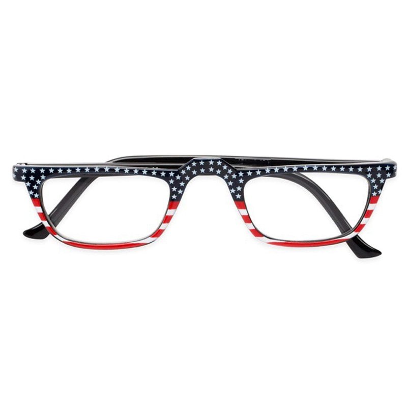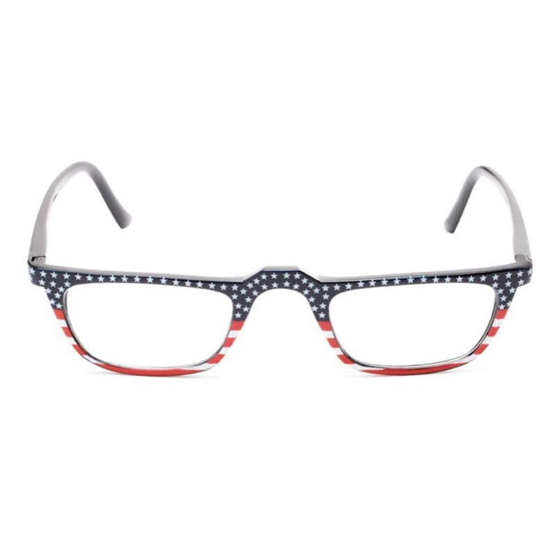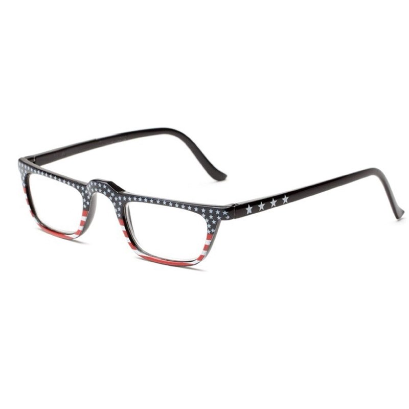 - THE ALL AMERICAN Reading Glasses are a rectangular style full frame reader. These patriotic cheaters have a beautiful hand painted American flag design on the front screaming "USA". The solid black metal temples make this frame lightweight, sturdy and comfortable. Designer style reader eyeglasses at an inexpensive price. Available in 3 different flag designs.
