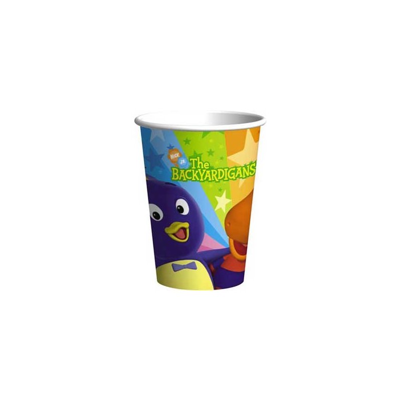 Each package of The Backyardigans Paper Cups includes 8 cups. Each cup holds 9oz. of your favorite hot or cold beverage. The cups feature Tasha and Pablo as well as The Backyardigans and Nick Jr. logo.