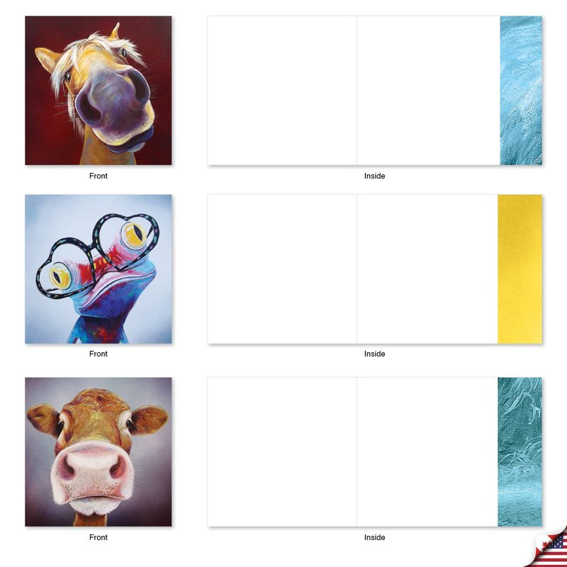 - INSIDE GREETING: The inside is ungreeted, making this perfect for your customized notes for all occasions! COVER - [close-up painted animal image]