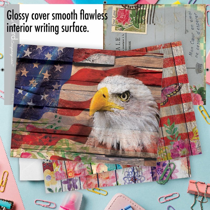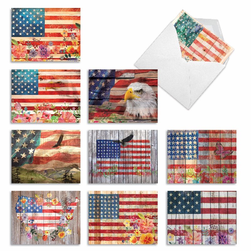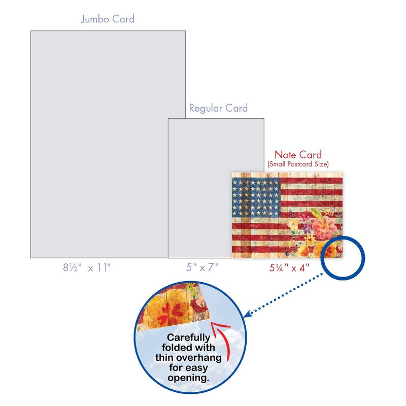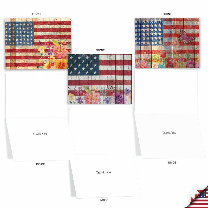UNITED STATES PRIDE THANK YOU CARDS Let freedom ring with these patriotic gratitude greeting cards. These cards are perfect for military wives, soldiers, or 4th of July parties. These gratitude cards can show your appreciation for someone in the army, navy, marines, coast guard, national guard, or air force. Your loved ones will admire your patriotism. Tell them how grateful you are with ‘Artful Flags'. PREMIUM QUALITY AND DESIGN These small cards were created as an assorted stationery This is part of a larger collection that spans a broad range of motifs, from traditional themes to contemporary graphics to vintage art – there's something for everyone! Our cards are printed on-demand on thick, bright, premium recycled paper. Many of the designs are available in both greeted and blank versions. Known for our funny cards and what has been described at times as snarky humor. We proudly print all our products in North America - USA and Canada (of all places)! Every card is printed-to-order and on demand, which eliminates waste and obsolete inventory. No matter what the product is, we strive for perfection - every card, every order, every time.