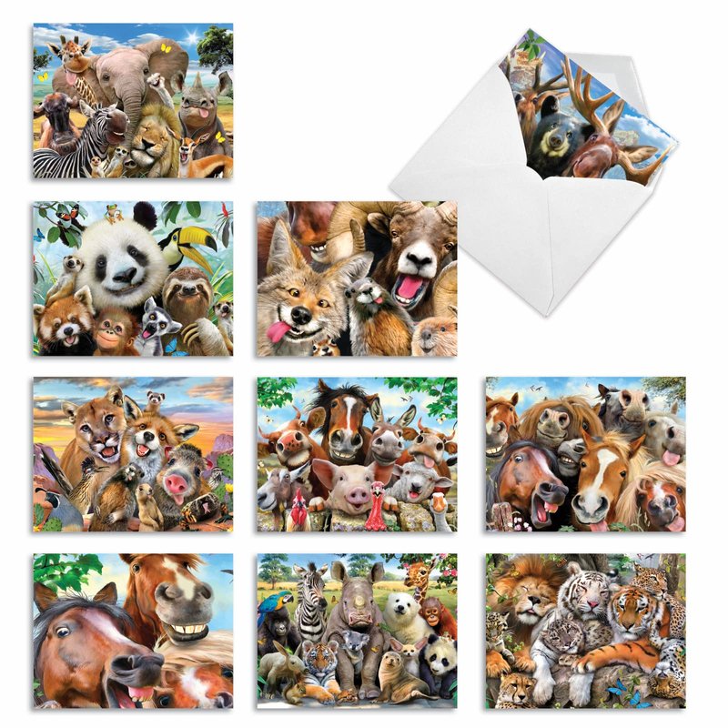 The Best Card Company - 10 Blank Animal Cards Box Set (4 x 5.12 Inch) - Bulk Assorted Pets, Horses, Wildlife Cards for Kids, Camp - Here's Looking at Zoo M6639OCB