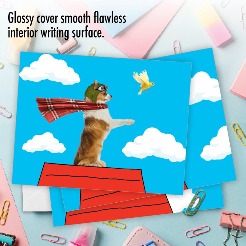 Here is fun and cool notecard set that features an assortment of superhero dogs ready to save the day! Save your friends and family from gloomy celebrations with this hip and trendy cardstock. 10 awesome cards each featuring a mighty pup standing proud and tall! Nothing makes celebrations better than humorous gifts. Order this sweet card collection and use it to wish everyone today! Celebrate birthdays, anniversaries, and a lot more with this unique card bundle. This special card set comes in 10 allowing you to wish 10 lucky recipients on their special day. You can also use this as a letter card for expressing thoughts and sentiments that you couldn't say in person! Make it a greeting to remember with handwritten messages! Our good as gold cards are printed on thick, snow white cardstock. All of our all-occasion note cards are made of recycled material (not papyrus, naturally). Our print on demand technology further reduces paper waste and environmental impact. The high gloss cover photo pops with quality and color, while the inside is matte, creating a smooth writing surface for your heartfelt notes. This year, reach friends, family, and business coworkers living near or far, as every greeting card ships with a mailing envelope. Bulk notecard assortments and sets arrive in a reusable box. All assorted cards for kids and parents are easily stored in an office desk, ready to customize for your next life occasion. This year, leave a big impression on your recipients. These all occasion cards are great for birthday gifts, thank yous, and hello cards. There are beautiful designs, and funny greetings, waiting for you!