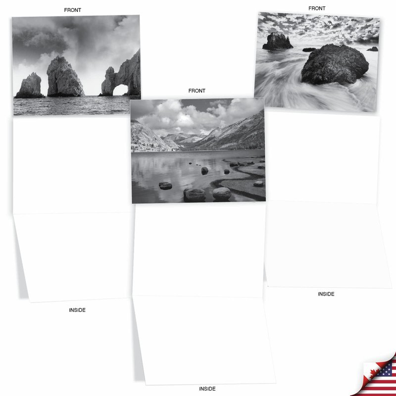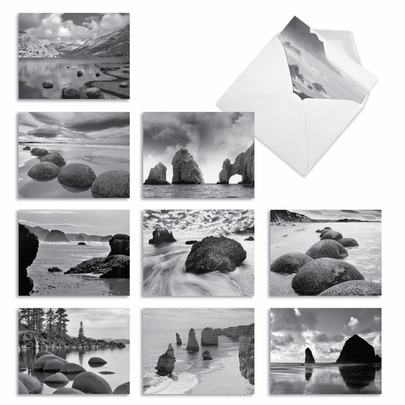The Best Card Company - 10 Blank Note Cards with Envelopes (4 x 5.12 Inch) - Black & White Photos, Bulk Boxed Set - On the Rocks M3309