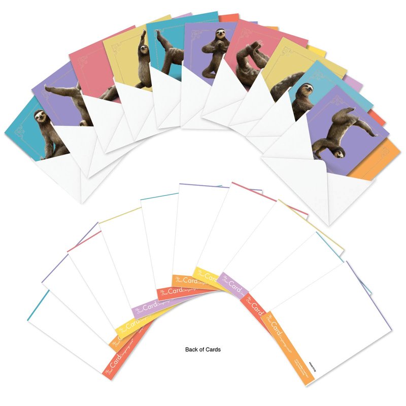 The Best Card Company - 10 Blank Yoga Note Cards (4x 5.12 Inch) - Boxed Notecards with Envelopes, Cute Animal Cards, Zen Assortment - Sloth Yoga AMQ6255OCB-B1x10