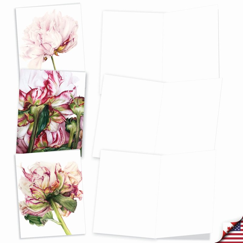 The Best Card Company - 10 Boxed Note Cards with Flowers - Blank Assorted Floral Notecards Bulk (4 x 5.12 Inch) - Precious Peonies AM6279OCB-B1x10