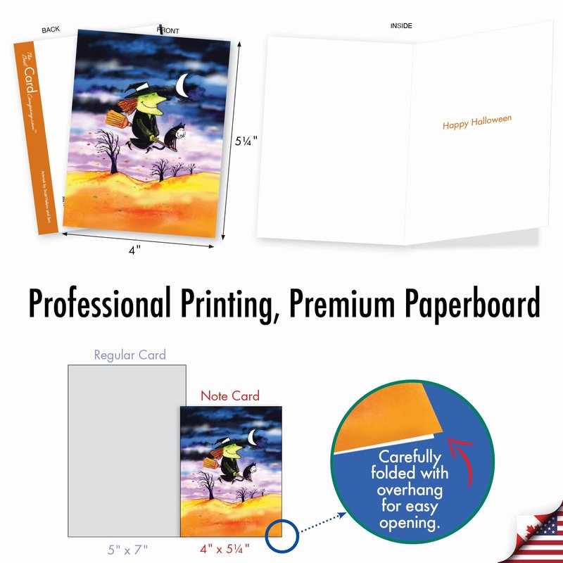 - MINI GREETING CARD SET – Our (4 x 5.12 Inch ) note cards are smaller than a typical 5x7. Miniature sized notecards for a scary yet sweet setting. Covers feature scared cat, skeleton skull, jack o lanterns, witches on broomstick, scarecrow and more! Fun images of spooky pumpkins and holiday decoration for adults and children of all ages. We offer a wide assortment of designs and art styles, offering a unique match for men and women looking for the right notecard for their special message.