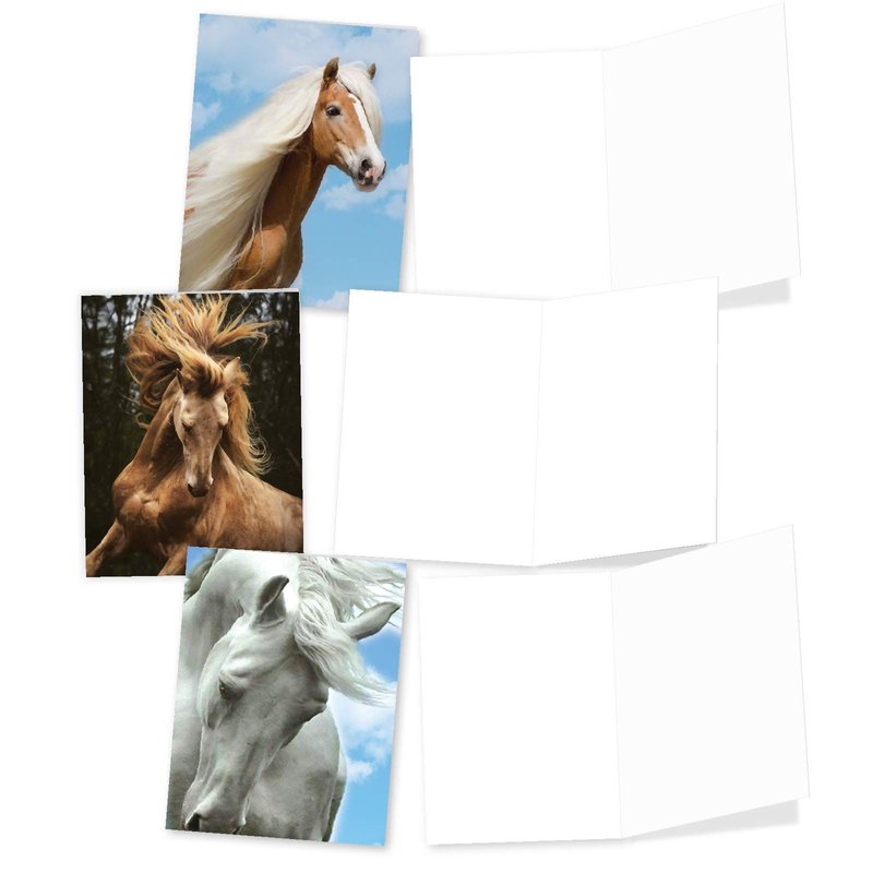 The Best Card Company - 10 Mixed Set Horse Note Cards Blank (4 x 5.12 Inch) - Wildlife, Animal Assorted Boxed Bulk Pack - Horses | Magnificent Manes M4601OCB-B1x10
