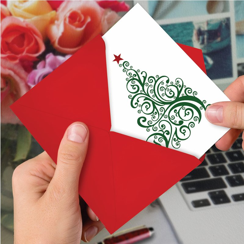 - Receive 12, fun Christmas cards with 5x7 envelopes (1 Design, 12 Cards); A bulk notecard set