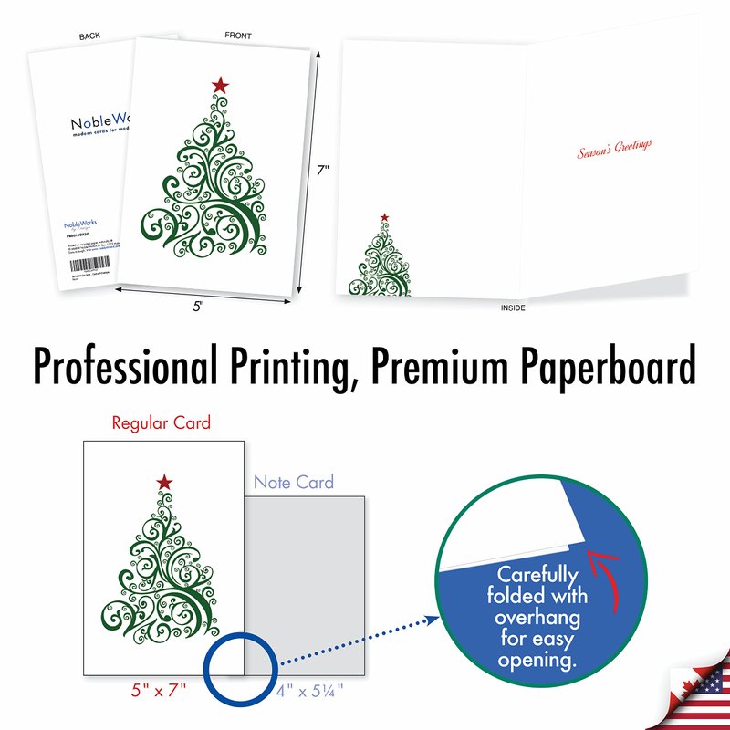 - Each holiday card has a glossy cover page that is slightly longer than the back for easy opening