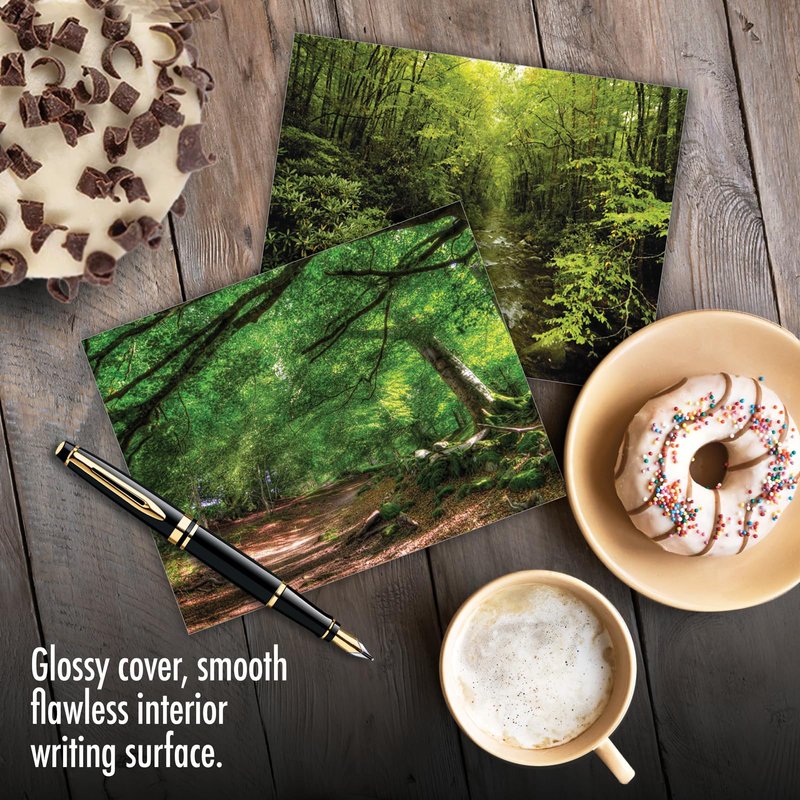 - INSIDE GREETING: The inside is ungreeted, making this perfect for your customized thinking of you, miss you, just because notes, for any time and for all occasions! COVER - [Featuring Meandering Paths and Trails Through Lush Forests and Overhanging Trees]