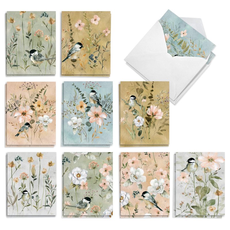 The Best Card Company Botanical Sketchbook - 20 Assorted Boxed Thank You Note Cards with Envelopes (4 x 5.12 Inch) - AM2819TYG-B2x10