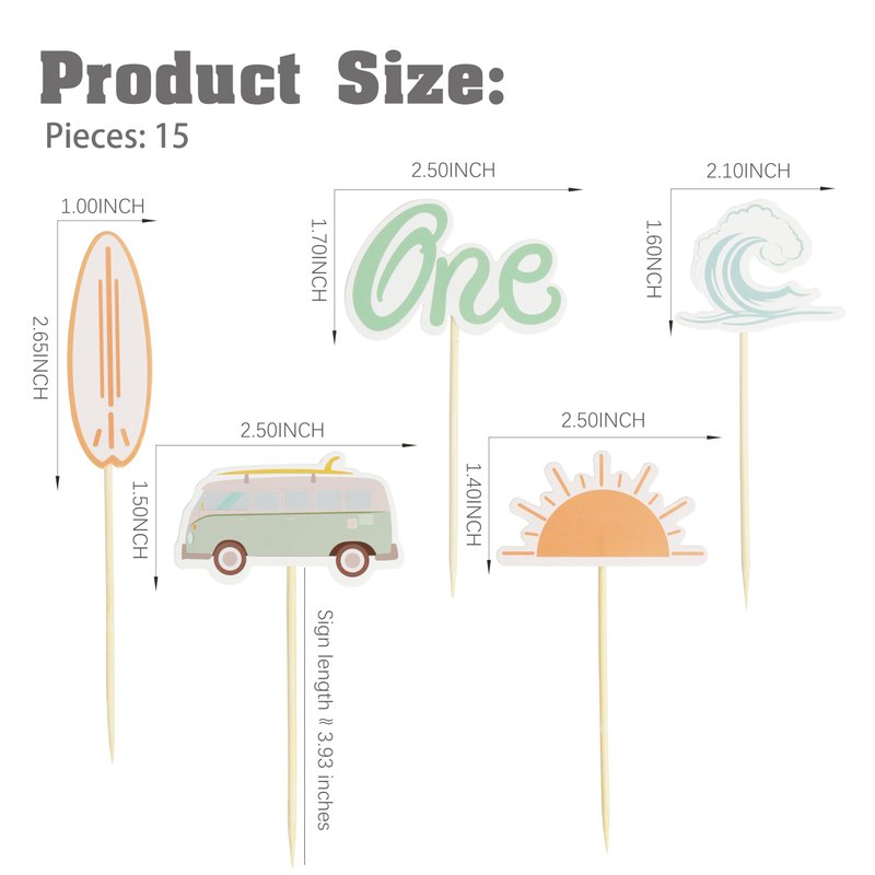 - BEACH CAKE TOPPER PACKAGING CONTENT: This product has 5 different styles of cake topper, including surfboard, sun, sightseeing bus, and one cake topper. The combination of different elements such as sea wave cake decoration and the collision of multiple elements can create impressive visual effects by decorating them into your party.