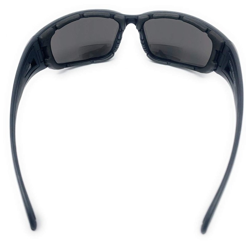 THE CHOPPER safety bifocal reading sunglasses feature a sporty, athletic, modern and stylish full rim frame with foam padded protection. The sweatproof foam cushion will protect your eyes from wind, dust, and debris while you are riding your motorcycle, skiing, working in harsh conditions or mowing your lawn. The foam cushion will keep your specs tight around your face keeping them from flying off or moving during high speeds. The Chopper features 180 wrap protection which blocks UV rays, wind, and debris from all angles keeping your eyes comfortable and safe. These bi focal glasses have a plastic rim with a wrap around shape. The frame is made of lightweight, high quality plastic, making these bifocal reading sunglasses your favorite eyewear accessory. The tinted lenses feature UV400 protection. Designer style safety bifocal sunreaders tinted eyeglasses at an inexpensive price.