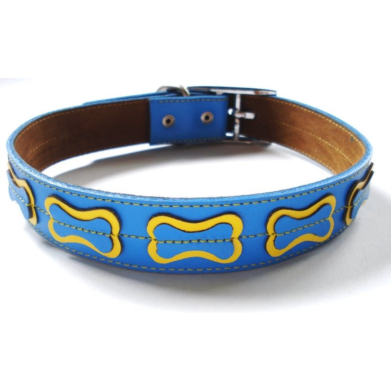 The Cool Puppy XXL Cool Leather Dog Collar - Light Blue with Yellow Bones