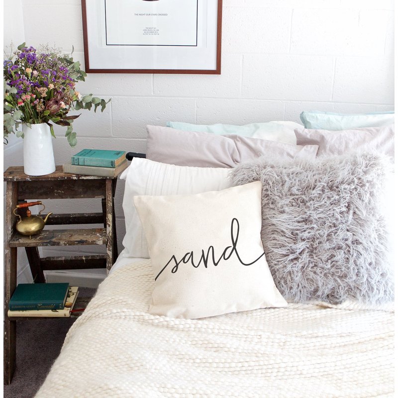 These stylish 100% cotton canvas pillowcases are the perfect addition to any bedroom! Printed on high quality canvas material, these throw pillow covers make unique statement pieces for your home. Each cushion cover features a beautiful, handwritten calligraphy design printed with rich black ink. Pillow covers are machine washable and easy to clean. No matter the theme of your home, our neutral colored home décor pillowcases allow you to mix, match and embellish! Please note: item does NOT include cushion or pillow.