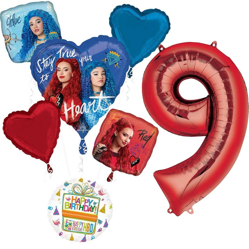 - (1) 28" Descendants The Rise of Red Heart Shape Foil Balloon, (1) 34" Giant Red Number 9 Foil Balloon, (2) 17" The Descendants Square Foil Balloons Chloe and Red, (2) 18" Heart Shape Foil Balloons and (1) 18" Mayflower Products Happy Birthday Present Foil Balloon. Ribbon Not Included. All Anagram Licensed Balloons are Made in USA. Founded in 1977, Anagram International leads the world in innovating and manufacturing foil balloons.