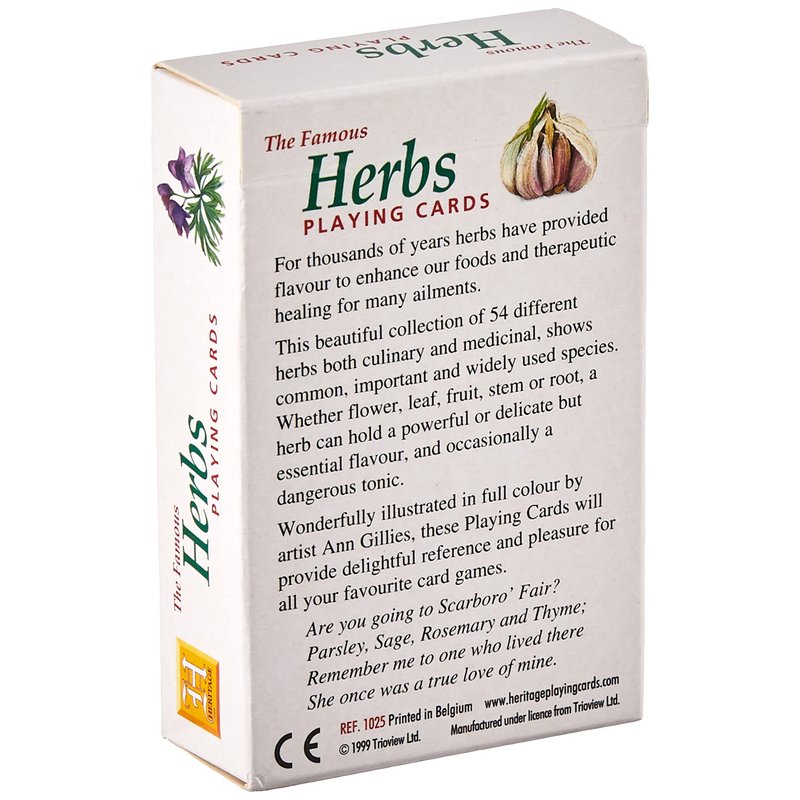 This beautiful collection of 54 different herbs both culinary and medicinal, shows common, important and widely used species. Illustrated in full color by artist Ann Gillies, these Playing Cards will provide delightful reference and pleasure for all your favorite card games.