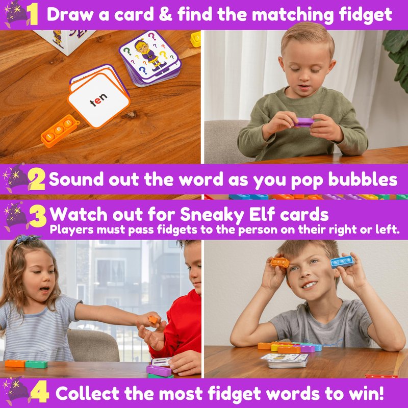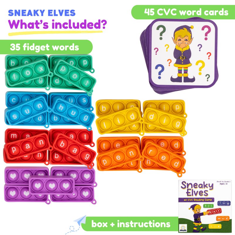 The Fidget Game Sneaky Elves CVC Sight Words Game, Mini Pop Sensory Toy to Learn and Spell, Educational Kindergarten Classroom Activities, Multisensory Reading and Phonics Flash Cards for 3+ Years