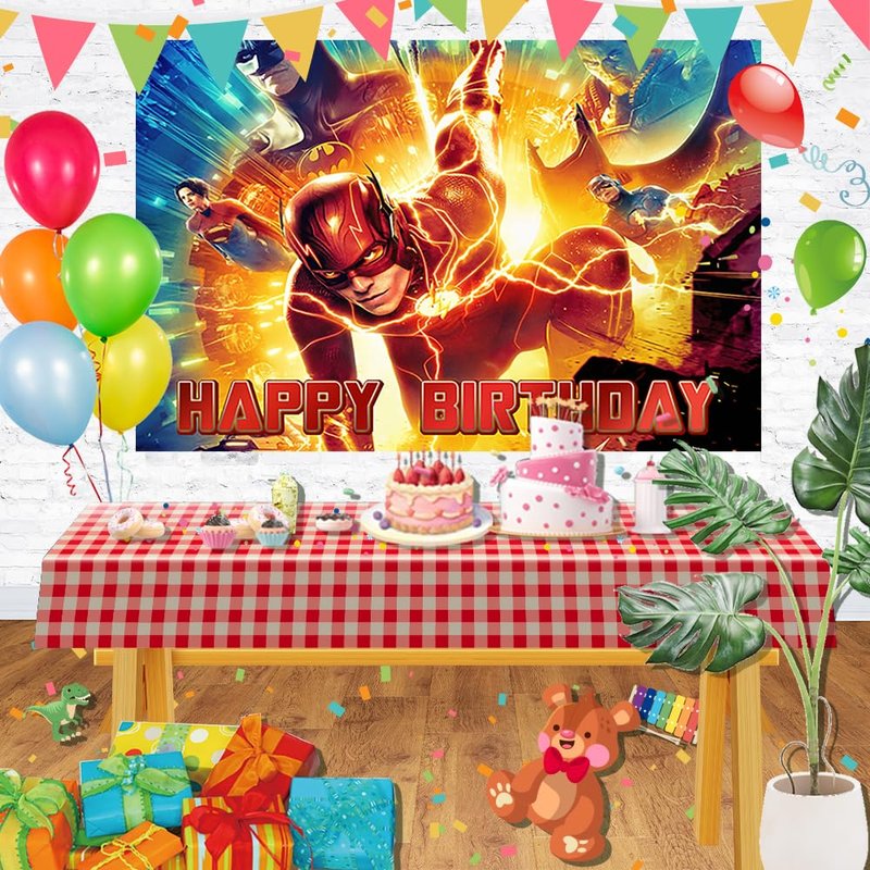 The Flash Backdrop for Birthday Party Decorations Hero Background for Baby Shower Party Cake Table Decorations Supplies Superhero The Flash Theme Banner 5x3ft