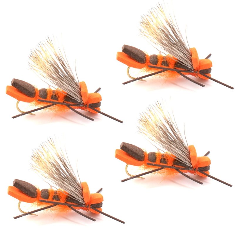 The Fly Fishing Place Godzilla Hopper Fly Fishing Flies - Orange High Visibility Grasshopper or Stonefly Dry Fly - 4 Flies Hook Size 8