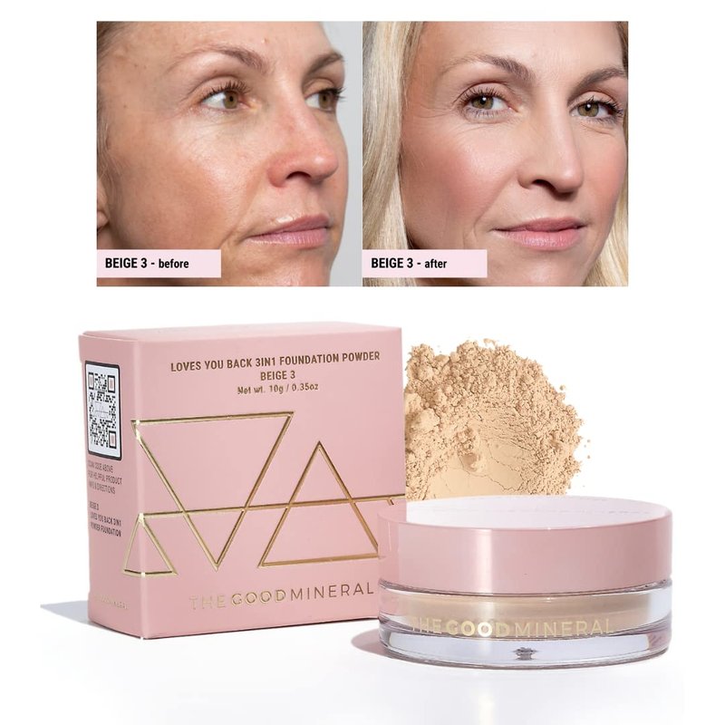 The Good Mineral Loves-You-Back 3in1 Mineral Powder Foundation (BEIGE 3) | Designed for acne-prone, sensitive skin | Evens out skin tone as a 3IN1 - Concealer, Foundation + Powder | Natural Coverage