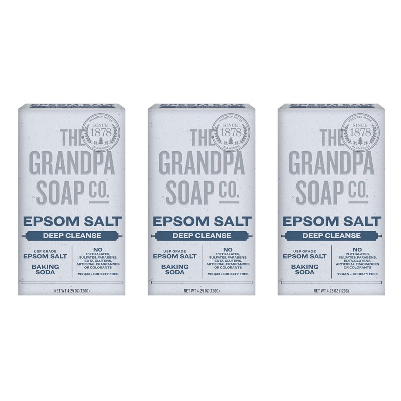 The Grandpa Soap Company Epsom Salt Bar Soap - Deep Cleansing Soap, Made with Epsom Salt and Baking Soda, Removes Dirt Grease and Grime, Vegan, For Face and Body, 4.25 Oz, 3 Pack