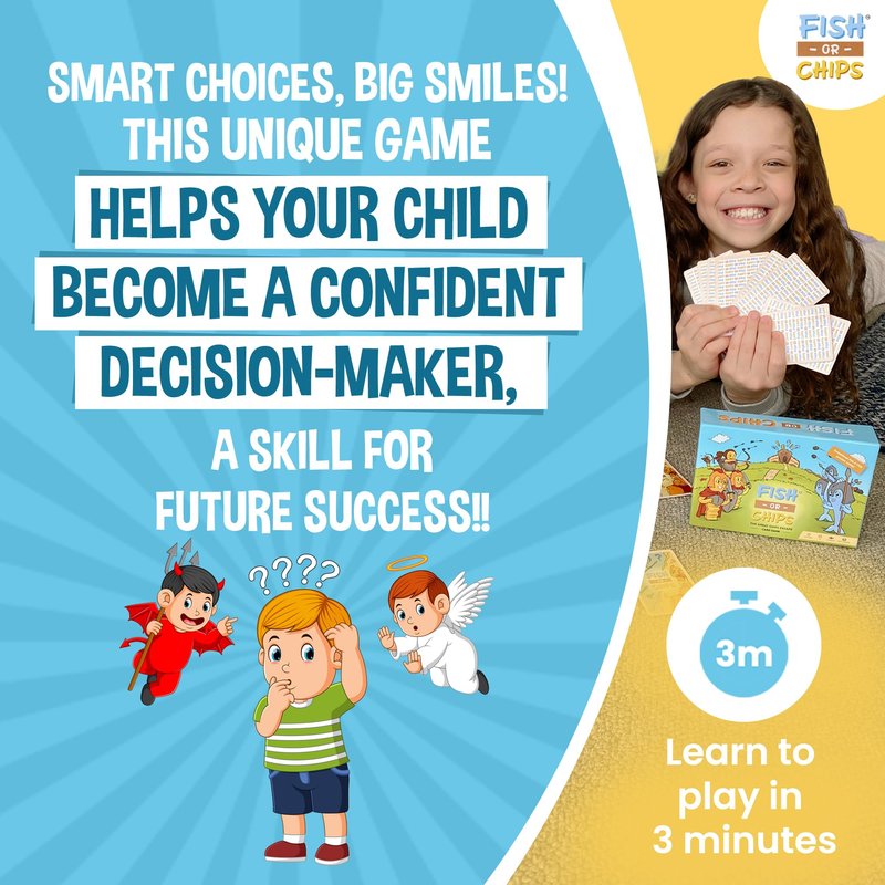 Fish or Chips is a fun card game for kids and the whole family. The game features colorful and vibrant artwork that will capture the attention of players of all ages. In this game, players must use their strategy and decision-making skills to determine whether to keep a card or trade it in for a chance at a better one. Whether you're a seasoned gamer or new to card games, "Fish or Chips" is a great choice for a fun and entertaining activity that everyone can enjoy.