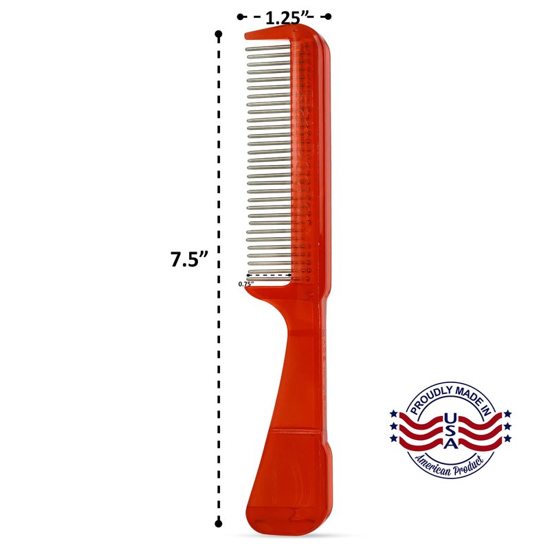 Finest Hair Combs Since 1996. manufactured, hand assembled and packaged in Hoffman Estates, IL. USA. Rotating teeth are extremely gentle to hair. Teeth move, wiggle and glide preventing hair loss and damage. Rotating teeth gently untangle wet hair without damage, preventing hair from stretching, pulling and snapping. Solid stainless-steel teeth eliminate static build-up; will not tarnish and can be safely disinfected in salon solutions. Trichologists recommend Hair Doctor rotating tooth combs because rotating teeth significantly reduce the pulling force that causes hair to stretch and break. The rounded smooth tips rub and massage the scalp stimulating circulation which promotes growth. The result is a comb that glides effortlessly through hair without scratching or damaging the hair or scalp. Hair Doctor range of combs and brushes offer solutions for long, thick, curly as well as fine and thinning hair. Many sizes and beautiful Colors for Women, Men and Children. Manufactured, hand assembled in Hoffman Estates, IL. USA.