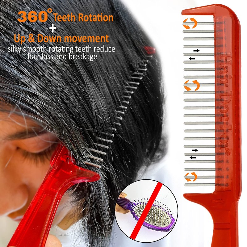 - Superior for detangling wet hair: Hair is most susceptible to damage when wet. This is due to the hydrogen bonds in the hair that are broken when wet and reformed when dry. A scientific study concluded that rotating teeth are more gentle to hair than conventional combs, greatly eliminating the pulling force that causes hair to stretch and break. Hair Doctor combs invented rotating tooth combs to reduce hair loss and damage and keep hair healthy.