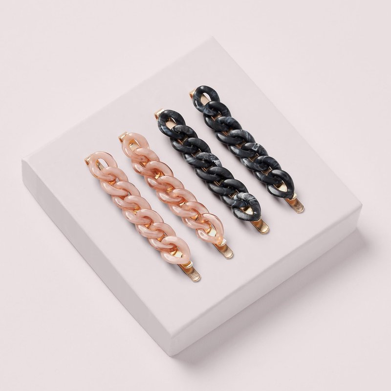 The Hair Edit Marble Link Pins - Black and Champagne Chain Link Bobby Pin Set
