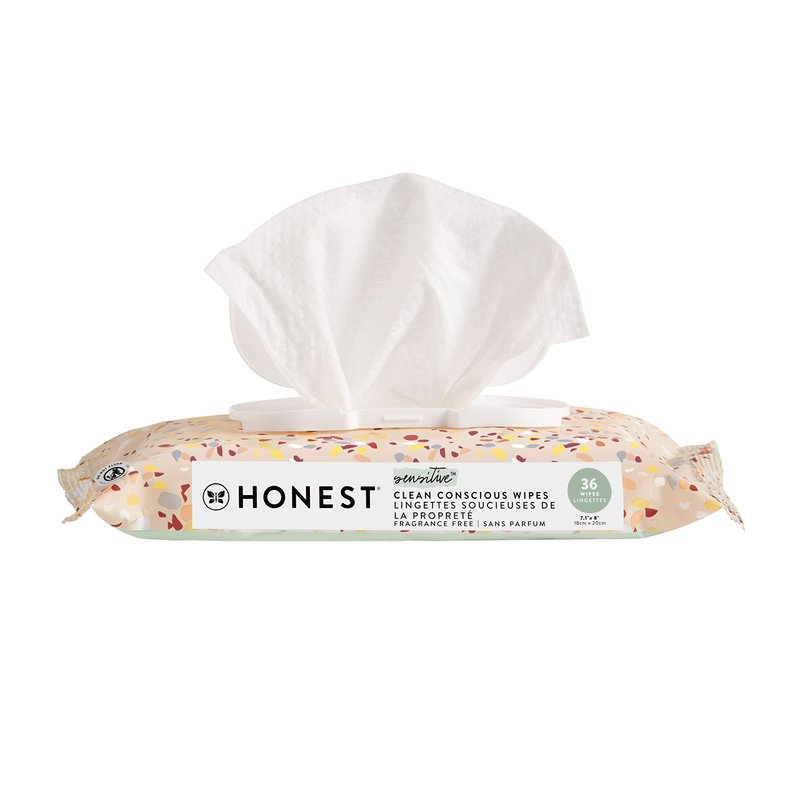 The Honest Company Clean Conscious Unscented Wipes | Over 99% Water, Compostable, Plant-Based, Baby Wipes | Hypoallergenic for Sensitive Skin, EWG Verified | Terrazzo, 36 Count