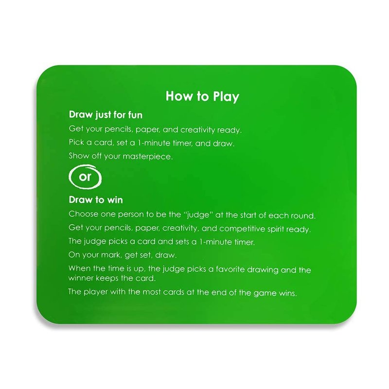 - ⭐ [Made for Everyone] This family game is simple, all you need is paper, pens and your imagination...no talent required. Pick a card, set a timer (perfect use for the smart phone) and draw--just for fun or to win. Showcase your imagination with this fun party game