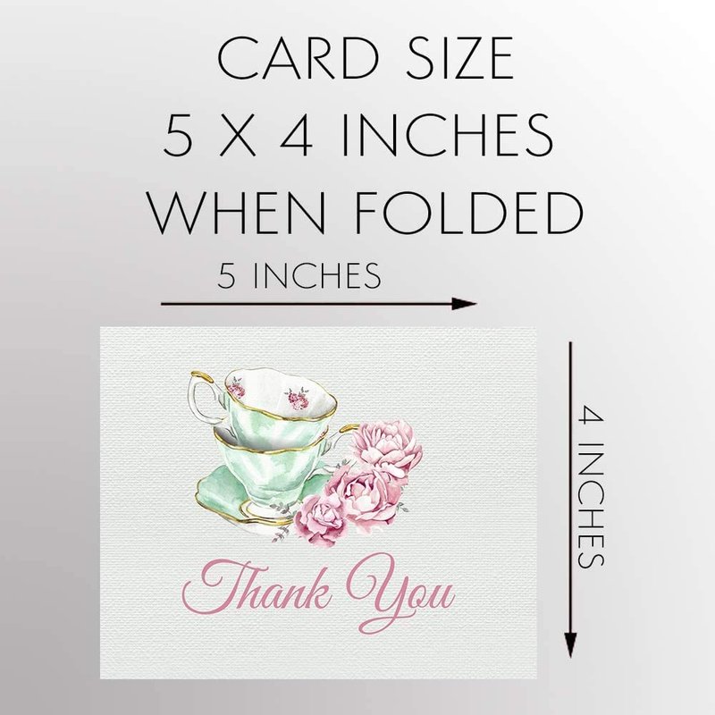 The Invite Lady Bridal Tea Party Thank You Cards Bridal Shower Folding Notes Thanks Wedding Party Pink Mint Blush Elegant Chic Vintage Tea Cups Victorian (50 count)