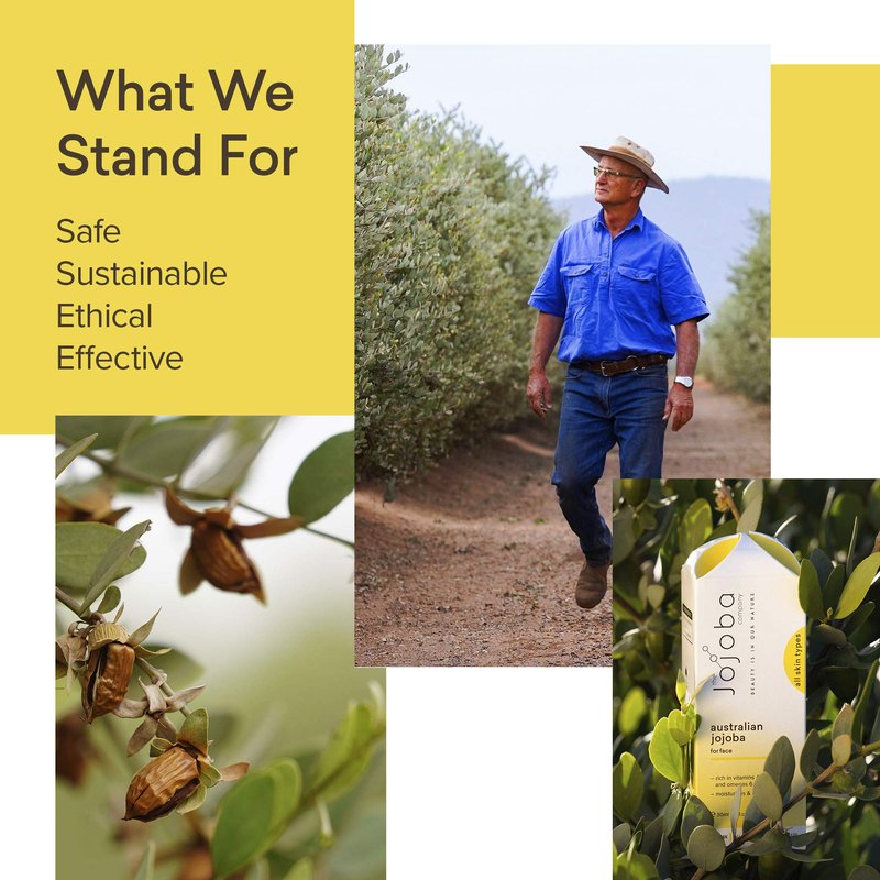 - JOJOBA'S PROMISE - At Jojoba we have four major elements we stand by. Our products will always be safe, sustainable, ethical and effective. From seedling to shelf, our natural products are safe for all skin types, ages and concerns. Our farm ethically sources all materials while adhering to the highest sustainability practices. The unique healing properties of our Wadi-Wadi Jojoba enables our skincare to delivery visibly transformative results, naturally.