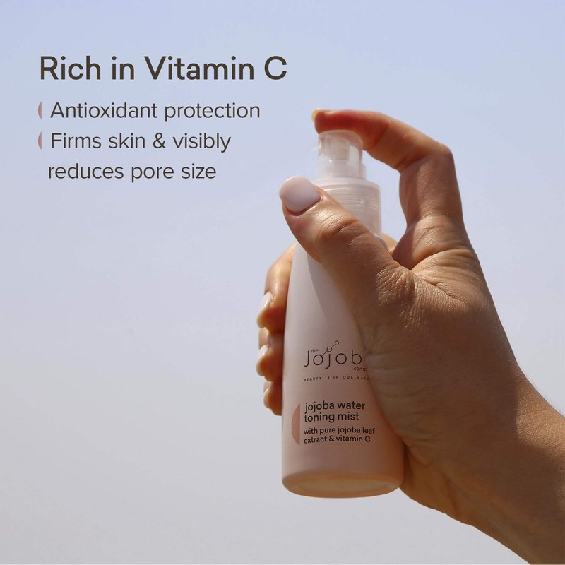The Jojoba Company Water Toning Mist With Pure Jojoba Leaf Extract & Vitamin C - Hydrating, Toning & Firming - Antioxidant Protection - Reduces Pore Size - For Thirsty, Dehydrated & Dry Skin - 50ml