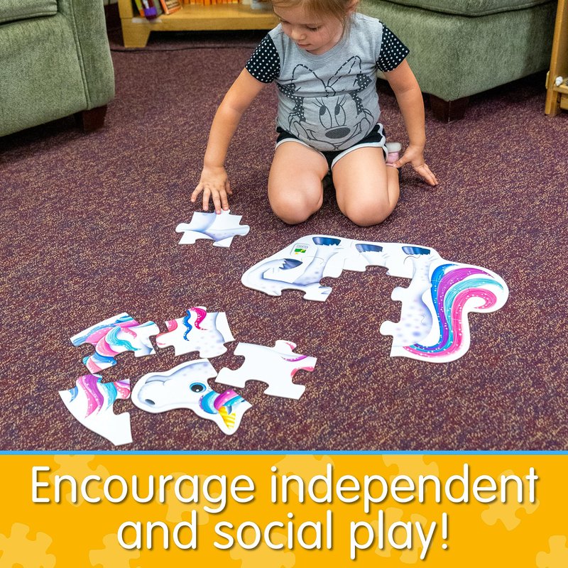 - KEY FEATURES – With the My First Big Floor Puzzle – Unicorn - your child will be fascinated as they piece together their magical unicorn friend! Your little one will learn as they build from piece to piece, sparking interest and improving concentration skills. The beautifully illustrated My First Big Floor Puzzles will keep your child engaged and is the perfect activity with play mates, too. The puzzle is made up of 12 large shaped puzzle pieces and is an excellent way to develop tactile and problem-solving skills. Puzzle pieces are bright and colorful, and encourage discussion.