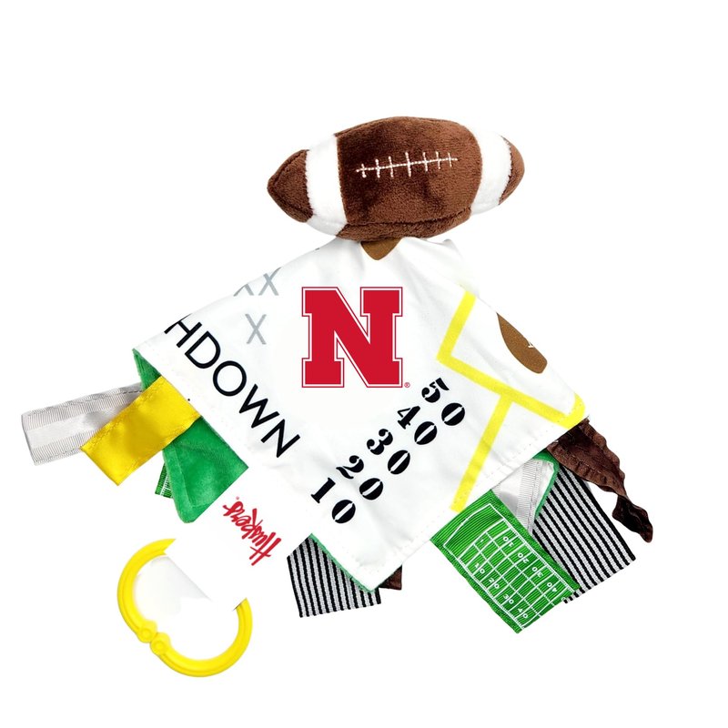 The Learning Lovey University of Nebraska Baby Football Tag Toy - College Baby Sensory Crinkle Toys - Soft & Safe - Ideal Baby Stroller Toy - BPA Free w/Stroller Clip (10" x 10" Tag Toy)…