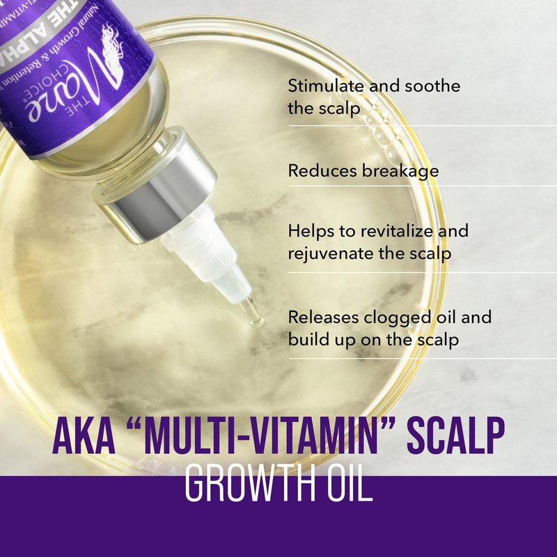 - AKA "Multi-Vitamin" Scalp Growth Oil: Infused with Biotin and Vitamin C, this nourishing formula helps to stimulate, revitalize and rejuvenate the scalp, releasing clogged oil and buildup, leaving it feeling soothed and conditioned
