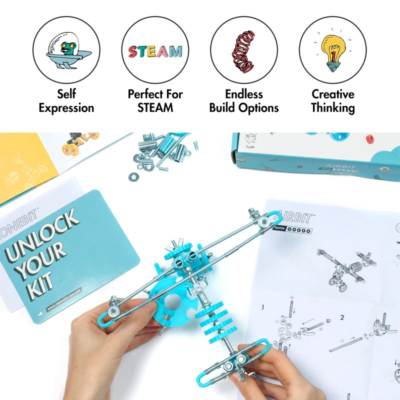 - Nuts and Bolts Adventure: Fly high in the sky! AirBit is the jet engine aircraft model kit for your Offbits robot. Create at least 3 out-of-the-box models to build a robot stem kit! Each airplane toy robot building kit contains enough parts to build a single model at a time, ensuring a focused and engaging building experience while helping young minds grow in the fields of Science, Technology, Engineering, Arts, and Math.