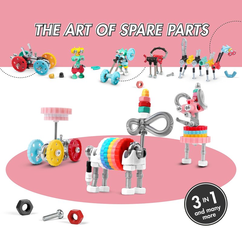 - Sustainable High-Quality Toys: Craft limitless designs with our kids building kit using top-notch materials and detailed illustrated instructions, making stem activities for kids enjoyable and safe. These kids construction toys come with connecting toys and hardware parts, letting you use recycled materials from home to make unique creations and repurpose items sustainably.