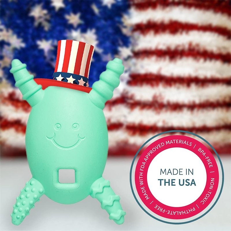 The Molar Magician Is an award-winning baby teether made in the USA! There are hundreds of teethers designed for the front teeth, but what about those hard to reach molars? Get the only molar teether that will make your baby smile, guaranteed! There are four different textures on each of the Molar Magician’s “arms & legs”. Your baby will love exploring their teether and figuring out which surface they like the most. The oval center shape is designed to prevent The Molar Magician from reaching too far into your baby's mouth, and allows them to give their gums the perfect amount of counterpressure for soothing relief. The base of The Molar Magician is designed for attachments. You can clip-on our Security Blankets, Teething Pals, Lanyards, Molar Grippie Stick and even keep it clean in our protective Molar Shell (Lanyard is included but all other accessories are sold separately) The Molar Magician is dynamic and versatile teether for all ages. Soothe your baby’s gums today!