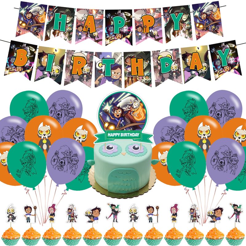 - ☆The Owl house Party Supplies: The Owl house Birthday Party Decorations set with 1 piece of happy birthday banner,18 pieces of balloons (3 styles), 1 piece of happy birthday cake topper,12 pieces of cupcake toppers. Our full set of the owl house theme birthday party supplies will add surprises to you, your family and friends.