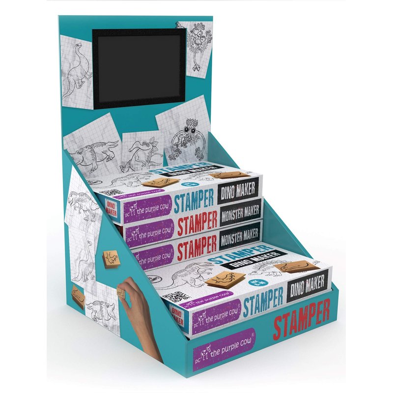 - The Purple Cow STAMPER is a revolution art and craft activity. The kit is contained of 36 stamps that together they create different dinosaur shapes. Finally, your kid does not have to be talented in arts and crafts to create beautiful designs.