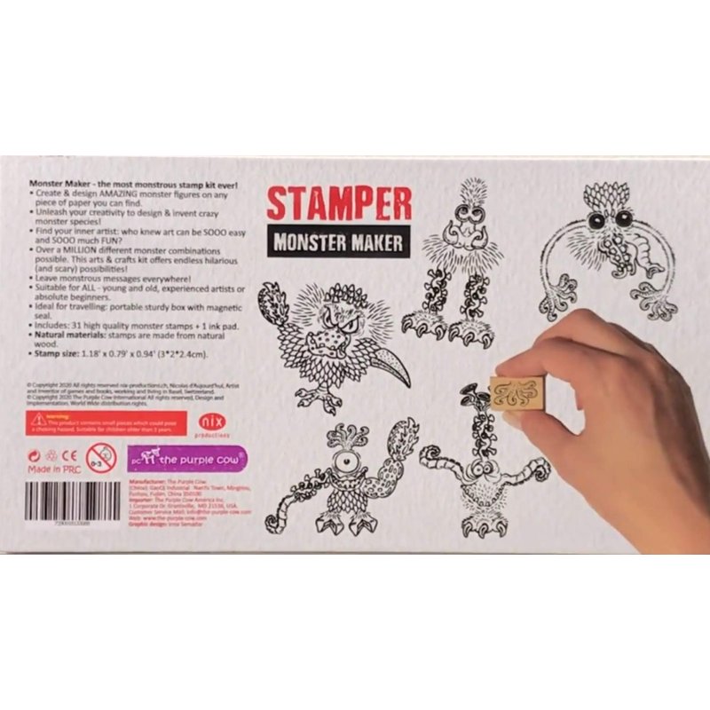 The Purple Cow - Stamper - Monster Maker Stamp Kit for Kids. Paint Stamper for Arts and Crafts. Develop Creativity with 31 Stamps and an Ink pad, for Girls and Boys Ages 6 to 16.