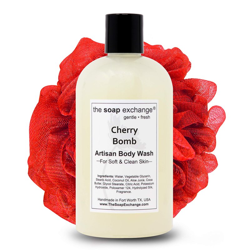 The Soap Exchange Body Wash - Cherry Bomb Scent - Hand Crafted 12 fl oz / 354 ml Natural Artisan Liquid Soap for Hand, Face & Body, Shower Gel, Cleanse, Moisturize, & Protect. Made in the USA.
