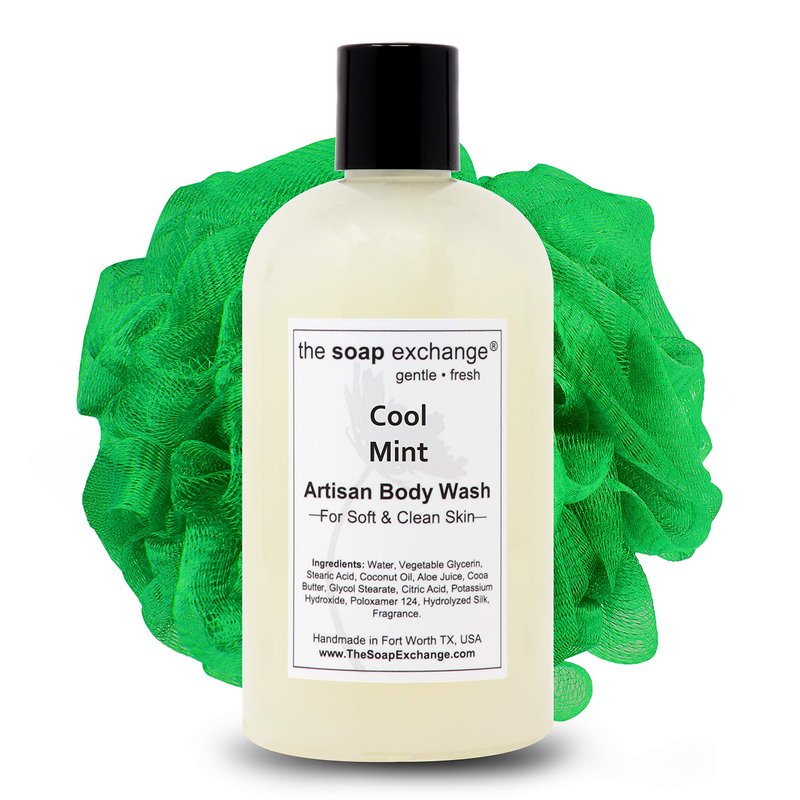 The Soap Exchange Body Wash - Cool Mint Scent - Hand Crafted 12 fl oz / 354 ml Natural Artisan Liquid Soap for Hand, Face & Body, Shower Gel, Cleanse, Moisturize, & Protect. Made in the USA.