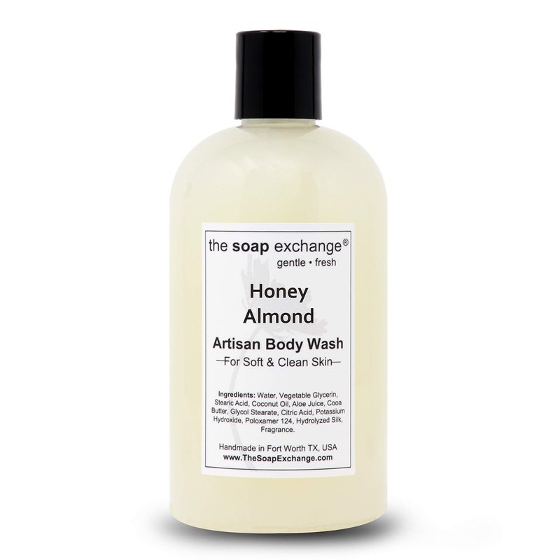 The Soap Exchange Body Wash - Honey Almond Scent - Hand Crafted 12 fl oz / 354 ml Natural Artisan Liquid Soap for Hand, Face & Body, Shower Gel, Cleanse, Moisturize, & Protect. Made in the USA.