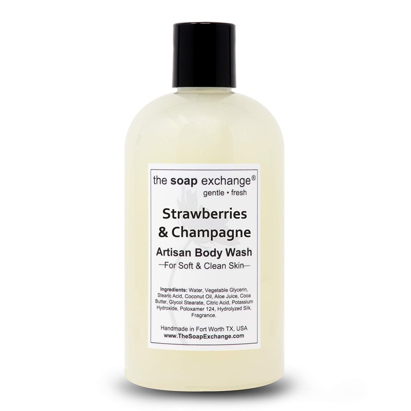 The Soap Exchange Body Wash - Strawberries & Champagne Scent - Hand Crafted 12 fl oz / 354 ml Natural Artisan Liquid Soap for Hand, Face & Body, Shower Gel, Cleanse, Moisturize, Protect.