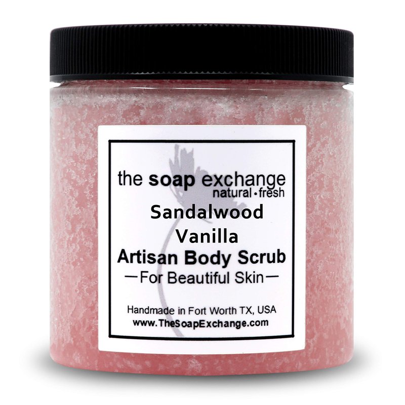 The Soap Exchange Sugar Body Scrub - Sandalwood Vanilla Scent - Hand Crafted 16 fl oz / 480 ml Natural Artisan Skin Care, Shea Butter, Exfoliate, Moisturize, & Protect. Made in the USA.
